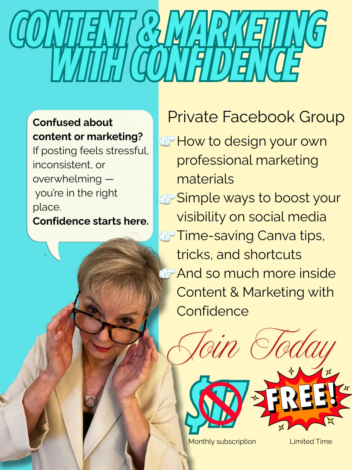 Here, you’ll get clear guidance, supportive coaching, and simple strategies to help you create confident content — without overwhelm.